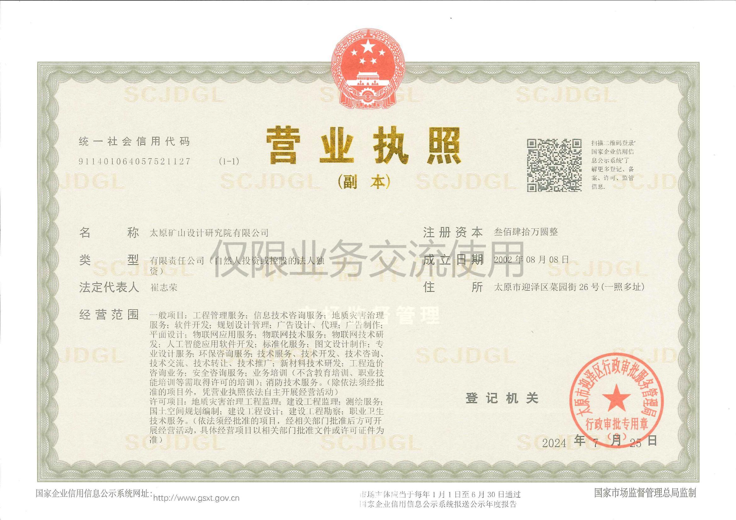 公司主要從事礦山采選尾工程設計、智能化及自動化礦山、建設綠色礦山、工程技術咨詢、規劃設計管理、施工勞務分包、土地規劃、地質災害治理服務、安全生產技術服務、軟件開發及測繪服務;煤礦、非煤礦山設計;煤礦、非煤礦山、危險化學品安全評價(業務范圍:煤炭開采業;金屬、非金屬及其他礦采選業;石油加工業,化學原料、化學品及醫藥制造業);非煤礦山、冶金等工商貿企業、危險化學品從業單位安全生產標準化評審;公共場所衛生、生活飲用水、公共場所集中中央空調通風系統的檢驗、檢測、評價;職業健康檢測檢驗;建設項目職業病危害評價、職業危害因素檢測與評價;安責險技術服務;業務培訓等工作。